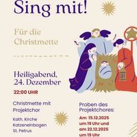 Pfarrei St. Christophorus Sing Mit! Weihnachten Chor M.Henrich Sing Mit! Für die Christmette an Heilig Abend soll in Katzenelnbogen ein Projektchor gegründet werden M.Henrich Musik Weihnachten Lesezei