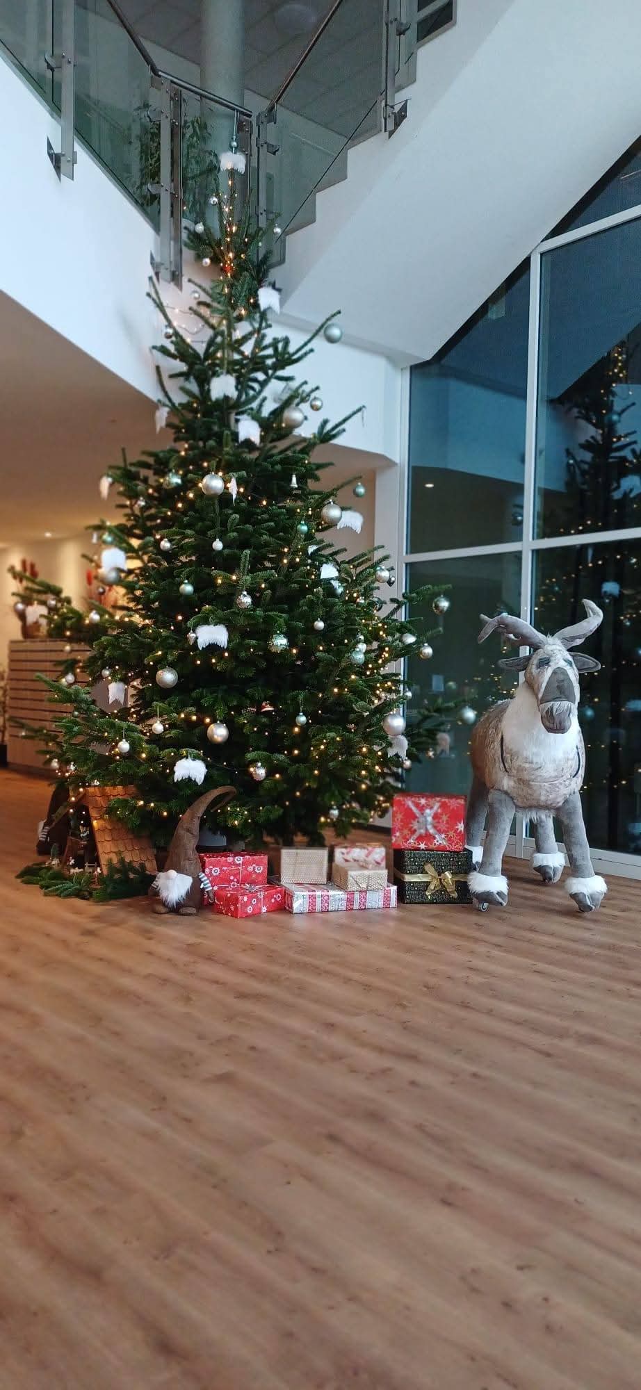Bevor er die Adventfeier verlassen konnte, baten ihn noch viele Eltern, ob sie ein Bild mit ihrem Kind und dem Nikolaus machen dürften. Natürlich stimmte er zu und so kam es noch zu einer Foto-Session vor dem leuchtenden Weihnachtsbaum im Gemeinschaftsraum.