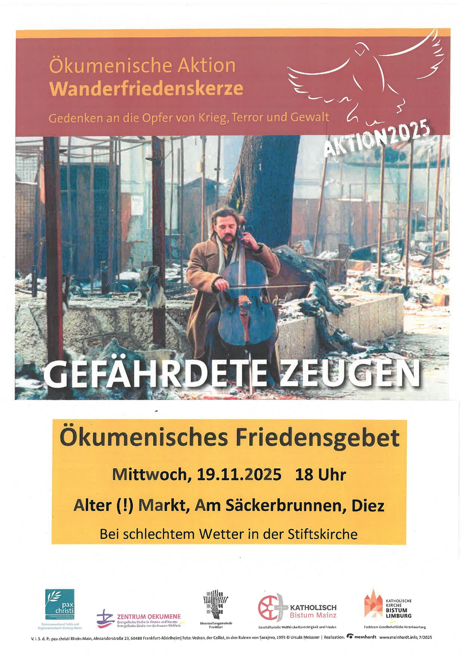 Ökumenisches Friedensgebet am Buß-und Bettag 19.11.25 auf dem Alten Markt in Diez um 18 Uhr