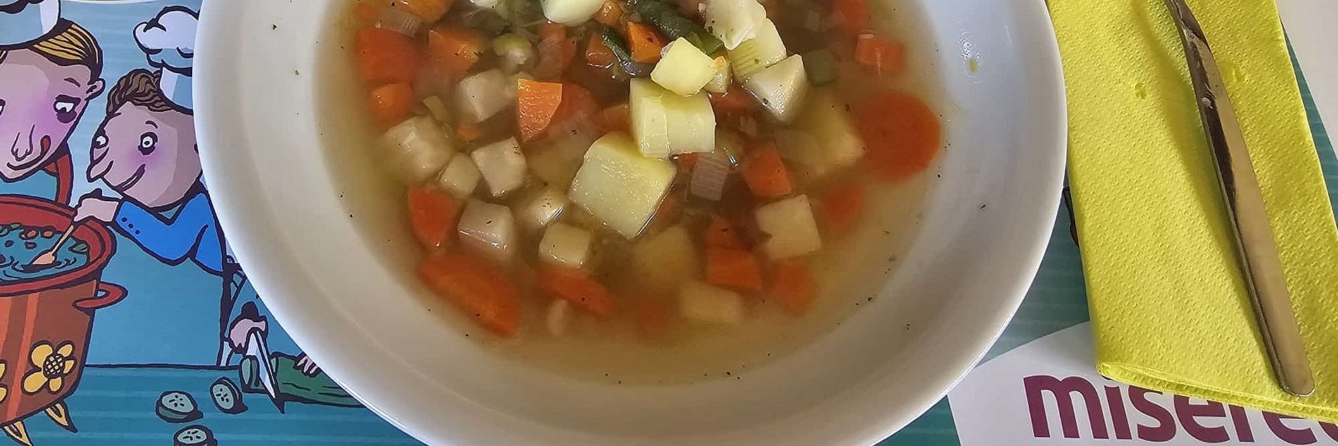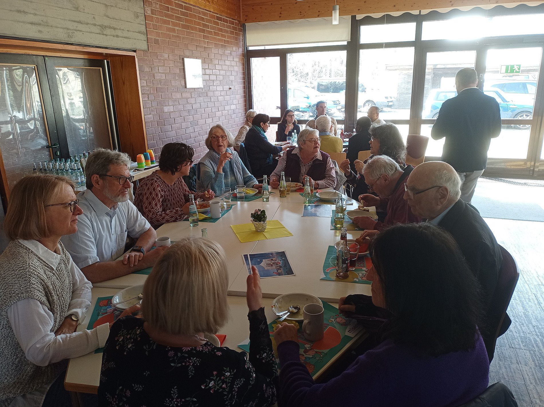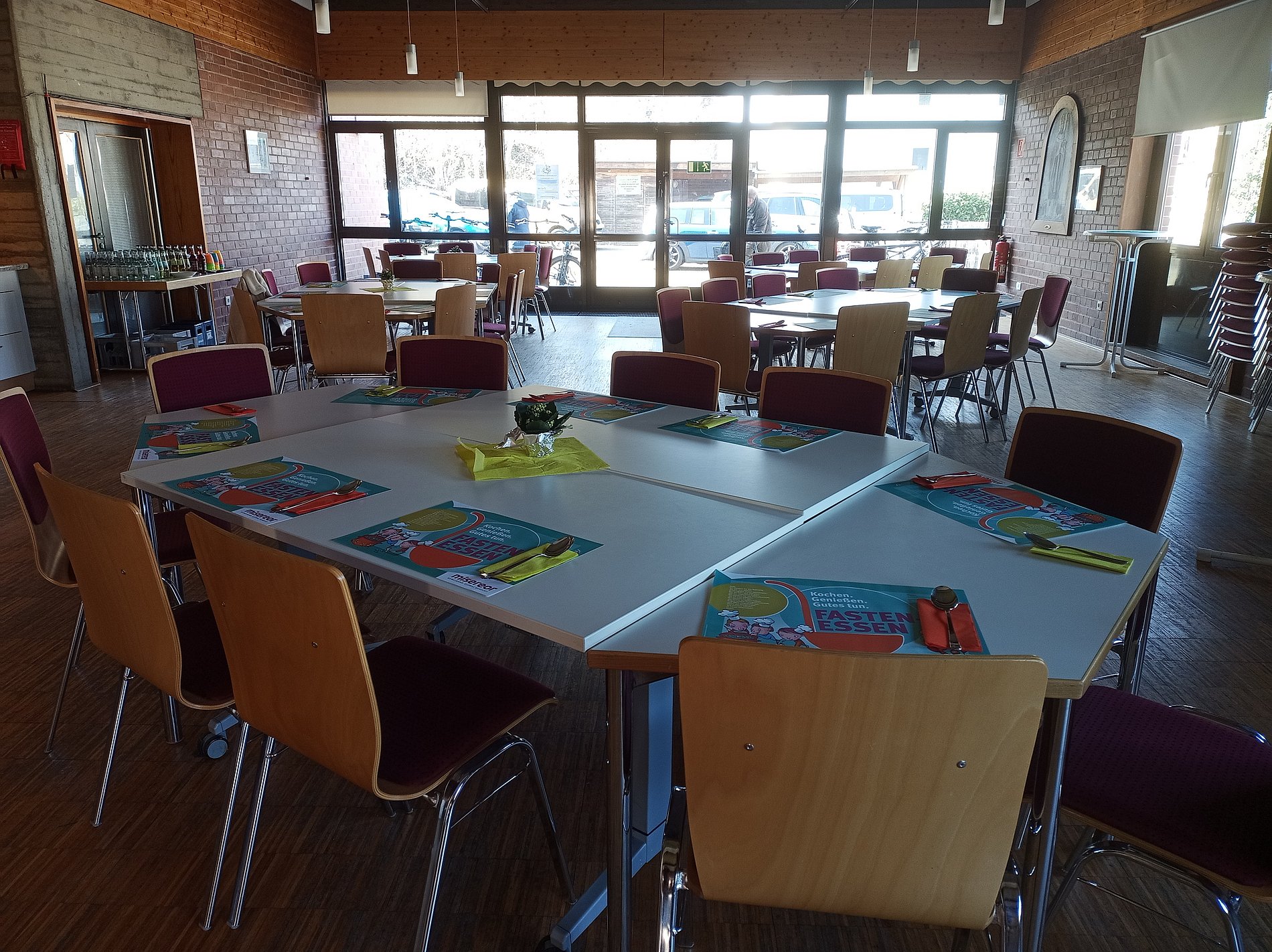 Anschließend gab es ein Fastenessen im Gemeindesaal. Der Ortsausschuss hatte dazu eingeladen, geputztes und geschnippeltes Gemüse von zu Hause mitzubringen. Während des Gottesdienstes wurde dann daraus eine leckere Suppe gekocht, die durch Würstchen und Baguette ergänzt wurde. Viele Menschen aus der Gemeinde, die am Gottesdienst teilgenommen hatten, nahmen die Einladung an und konnten sich dann direkt an den gedeckten Tisch setzen. Zum Nachtisch spendierte Frau T. eine Art Krapfen aus Kamerun, frisch zubereitet in der Küche. Sehr lecker!